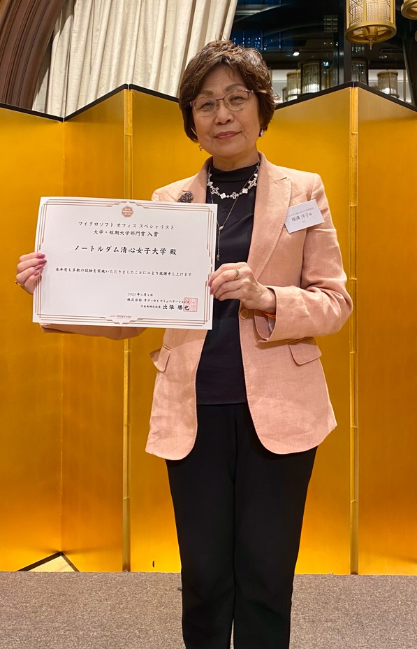 またその後開催された【オデッセイ アワード授賞式】において本同窓会がマイクロソフト オフィス スペシャリスト 大学・短期大学部門賞を受賞、横溝同窓会長が授賞式に出席しました。
